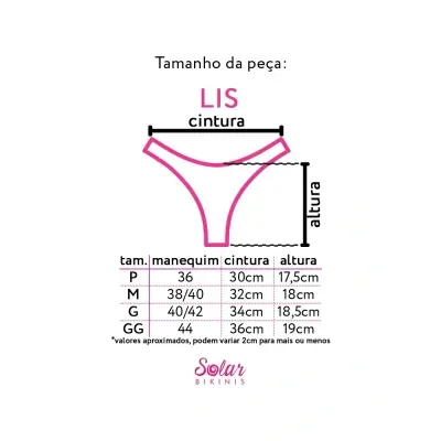 A calcinha de biquíni aviador LIS tem a modelagem perfeita para todos os tipos de corpo. Pode ser usada como asa delta com as laterais mais puxadas, ou mais baixas.