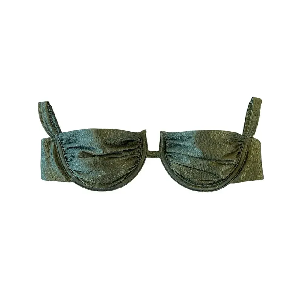 - Cor: Tecido verde musgo com textura especial e brulho acetinado